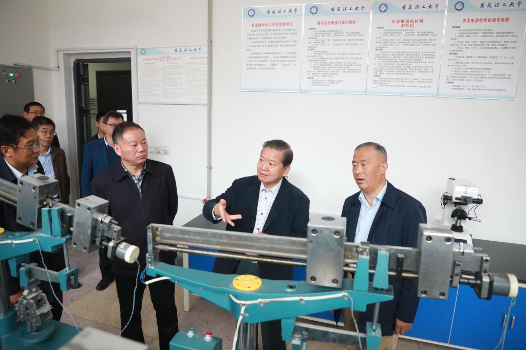 袁亮一行首先参观了学院特色文化长廊,校友文化墙既定格了历届毕业生的青葱岁月,也饱含着学院对毕业生们的深切祝福和美好愿望,凝聚并延续着材料学院的历史。随后,袁亮详细了解无机非金属材料工程专业迎接工程教育认证专家的线上线下准备情况,实地查看了微细矿物聚团分选实验室,砂浆混凝土实验室,水泥混凝土力学测试室、新型功能材料大学生创客实验室、清洁能源转化与高效利用实验室、矿山固废资源化利用实验室等,并与正在做实验的研究生进行了亲切交流;袁亮指出,专业认证是学校本科教学质量保障与提升的重要抓手,是专业内涵建设的主要组成部分,学院领导班子要学深弄懂工程教育专业认证标准,充分展示我校本科教学和人才培养的能力和水平,工作落细落实,做好专业认证各项准备,全体师生以最佳的状态迎接认证专家的线上线下考查。